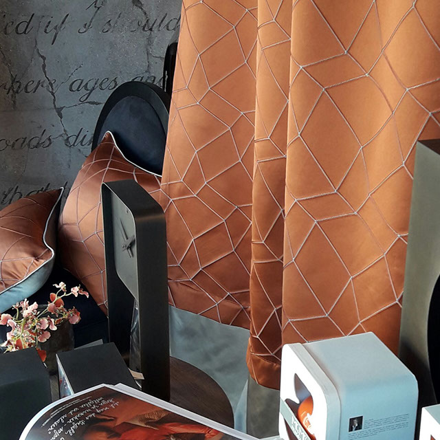 Presentiamo al cliente delle novità in ciascun appuntamento, poniamo grande attenzione ai disegni e alla gamma di colori per assicurarci che tutte le collezioni possano essere usate in coordinato e creare così uno schema coerente in tutti tipi di interni. Svolgiamo un ruolo importante nel processo creativo; dalla scelta della tessitura che creano originali textures alle tavolozze di colori che creano disegni unici per gli stampati o ricamati dei tendaggi.